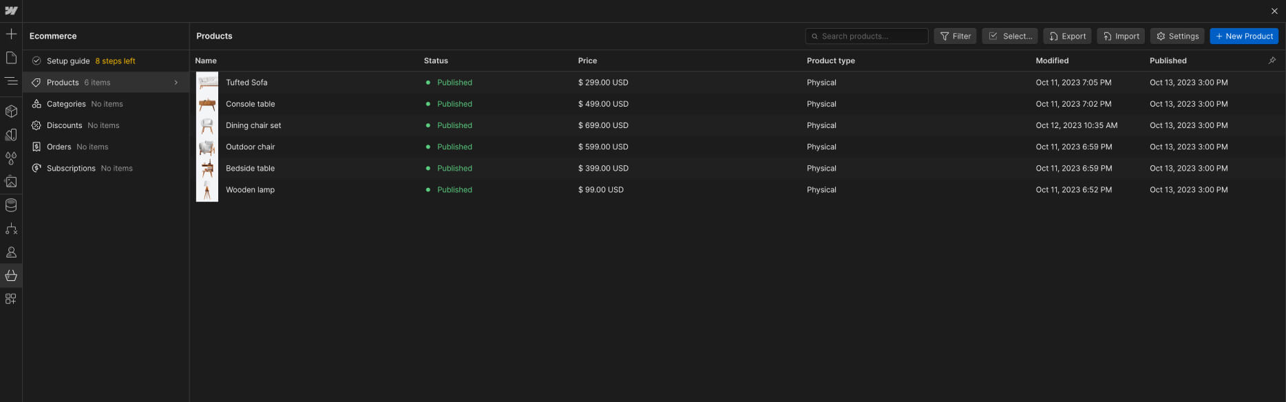 Products or eCommerce content function in a similar way to the CMS dynamic content, however, this is focused exclusively for eCommerce products.