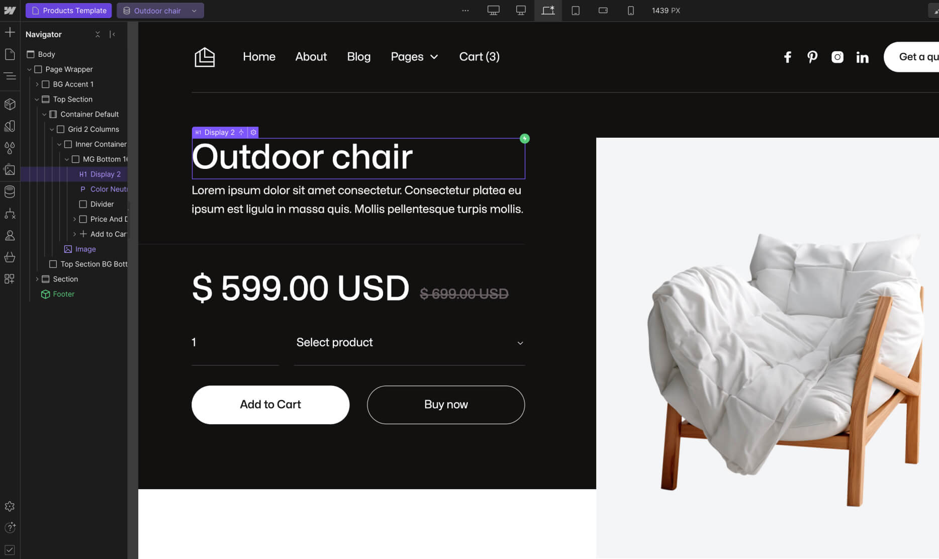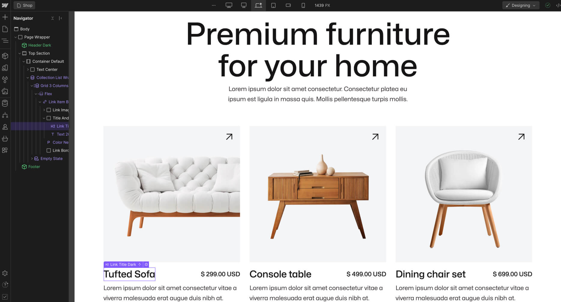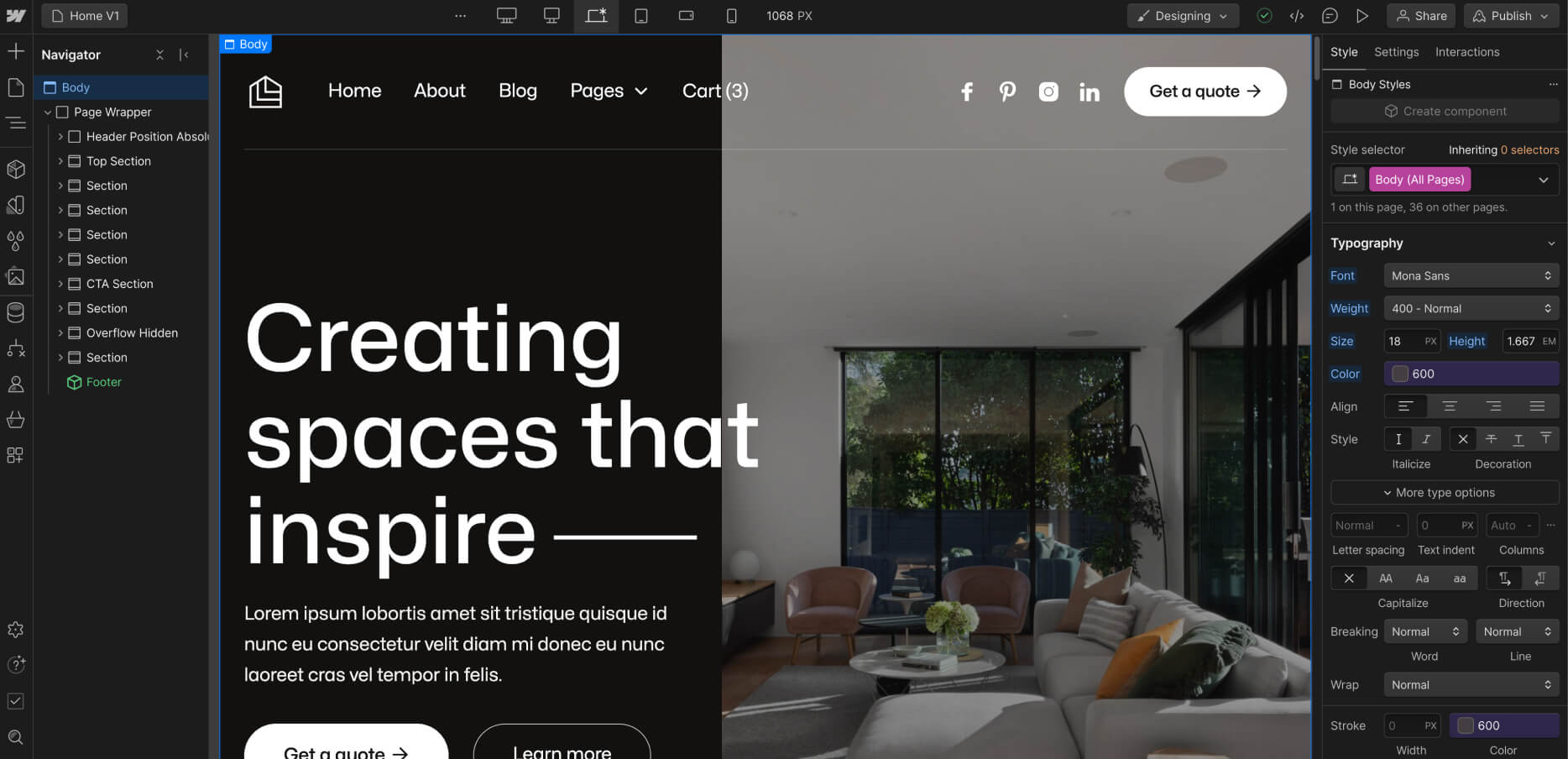 Everytime you make a change (for example, you create a new section design), it's a good practice to go to your Viewport top navigation and see how it looks on Tablet and Mobile.