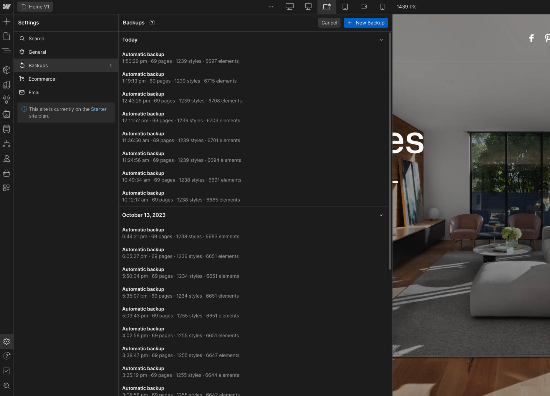 If something goes wrong, for example, if you are not liking where the website is going to, if you deleted some critical classes that were required to make the Template look nice, or if you just want to go to a previous version for any reason, you can always go to the Backups section.
