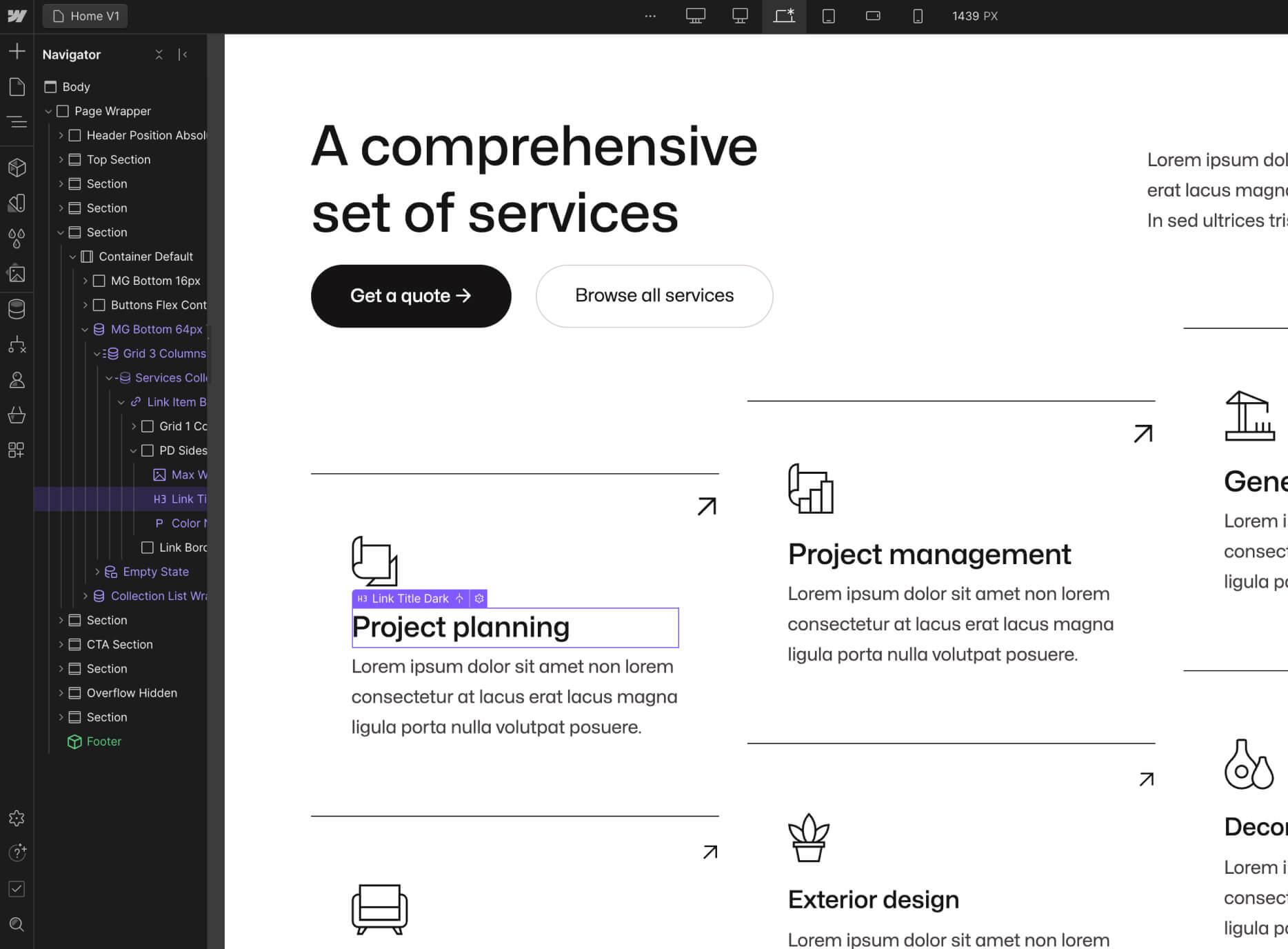 As you could see above, Construktion X was built on Webflow using the best practices to make it very easy for you to edit the template and customize it to your needs.